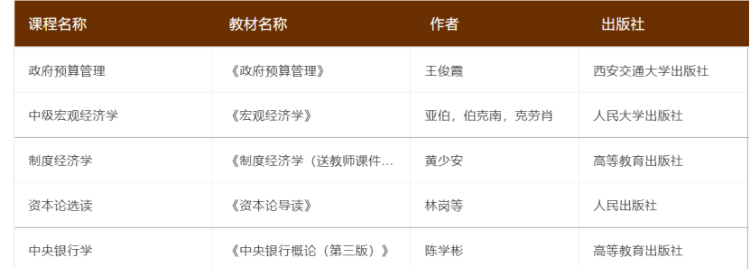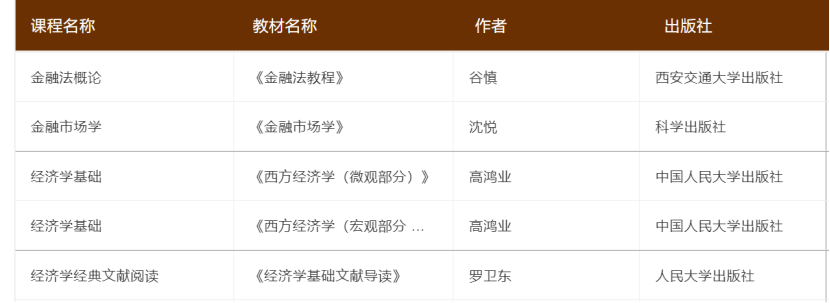 秋季学期课程教材